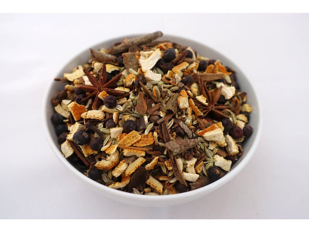 | Składniki | Cynamon, skórka pomarańczowa, koper włoski, jałowiec, anyż gwiazdkowy, goździki. |