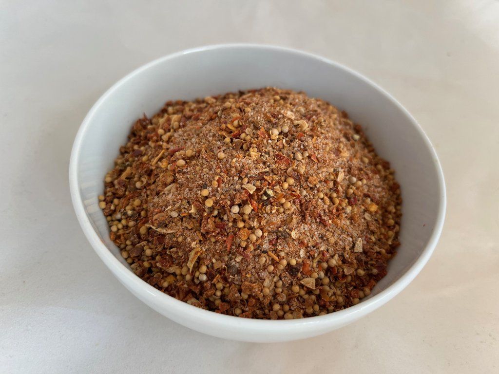 | Skład | Sól (30%), płatki papryki czerwonej, GORCZYCA biała, kolendra, cukier, maltodekstryna, papryka słodka, pieprz czarny, kminek rzymski, cebula. |