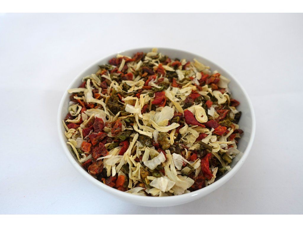| Skład | Płatki papryki czerwonej, cebula, płatki papryki zielonej, wzmacniacz smaku (glutaminian sodu), sól gruboziarnista (10%), pieprz czarny gnieciony. |