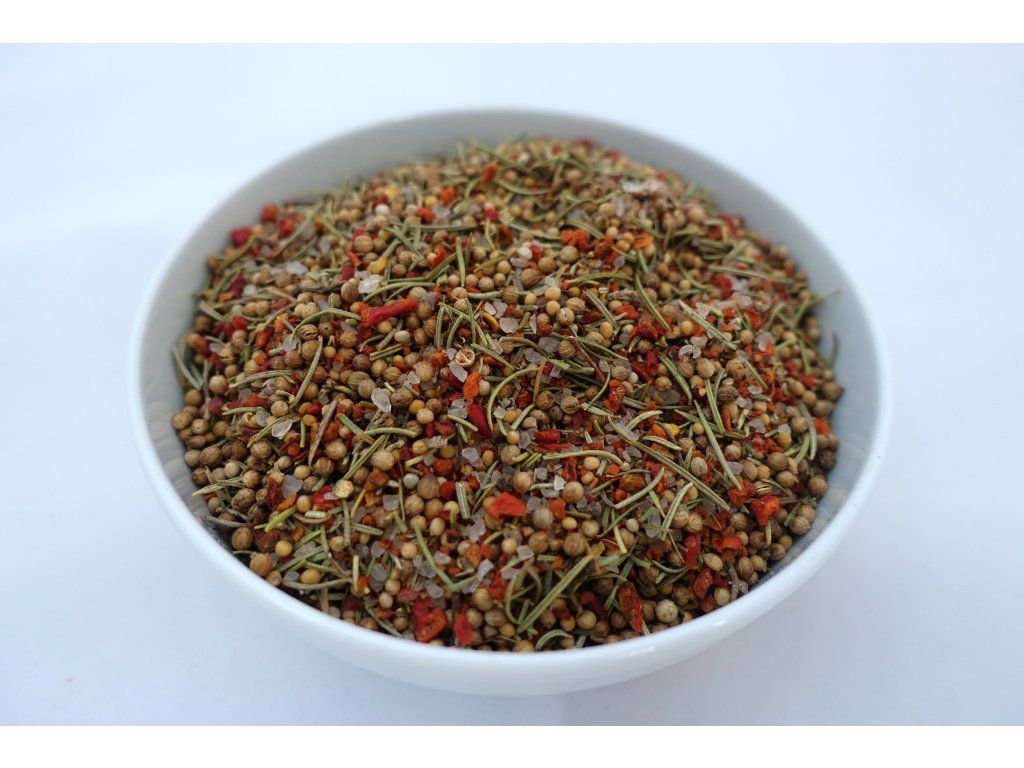 | Składniki | Gruba sól (maks. 30%), płatki czerwonej papryki 4x4, kolendra, biała MUSZTARDA, rozmaryn, glutaminian monosodowy, pieprz czarny. |