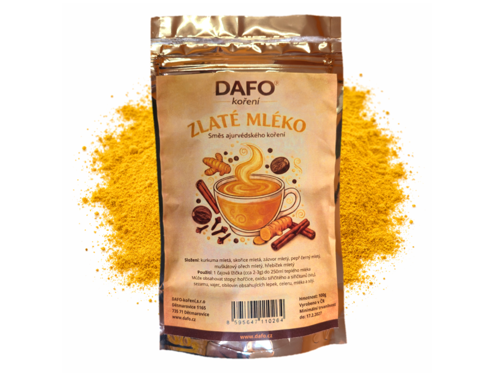 Odkryj magię rytuału, który rozgrzeje Twoje ciało i umysł. Nasze Złote Mleko od DAFO to starannie opracowana mieszanka oparta na tradycyjnej medycynie indyjskiej. Bazą jest wysokiej jakości kurkuma, która nadaje napojowi charakterystyczny kolor i ziemisty smak, uzupełniony rozgrzewającym imbirem, cynamonem i szczyptą czarnego pieprzu. Ponieważ pochodzą bezpośrednio od producenta, gwarantujemy mieszankę stworzoną w Czechach z najczystszych składników, bez dodatku cukru i sztucznych aromatów.